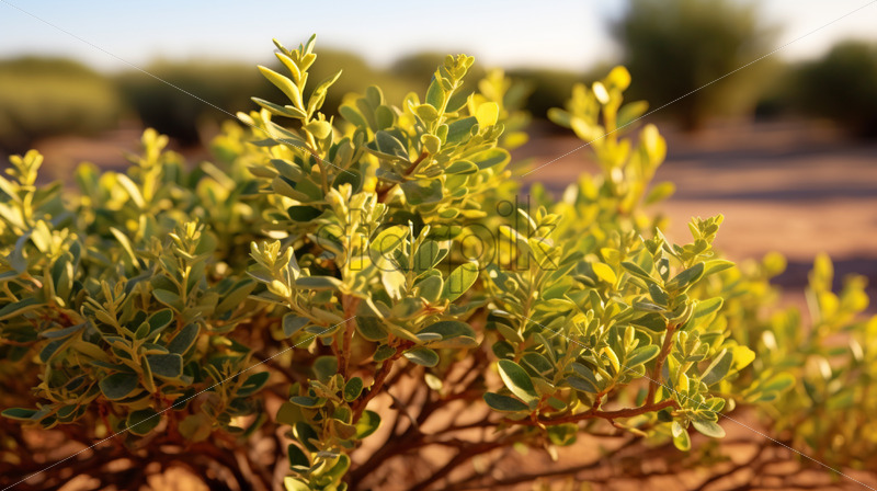 A patch of Creosote bush, with its aromatic leaves, thriving in the desert heat
