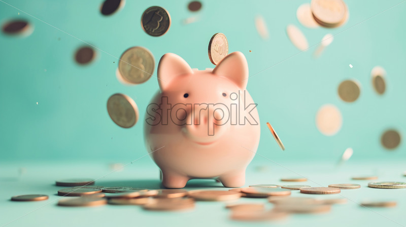 Home » Shop » Uncategorised » A piggy bank and falling money, on a green background