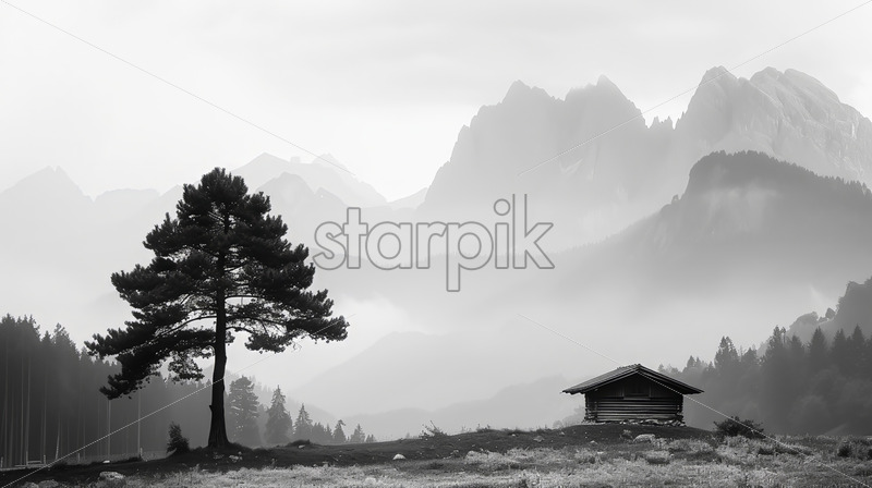 Daylight picturesque sunny view to landscape with green mountains and old traditional houses. Bright blue clear sky. Negative copy space, place for text. Moieciu, Romania Royalty Free Stock photo
