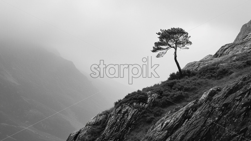 Home » Shop » Uncategorised » A pine tree on a mountain slope, black and white image