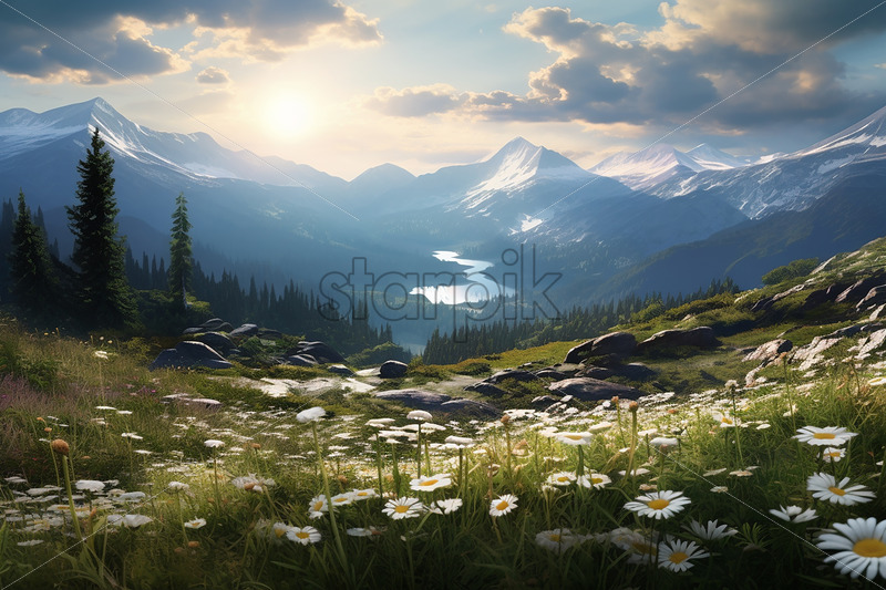 Home » Shop » Uncategorised » A plain in the mountains at sunrise