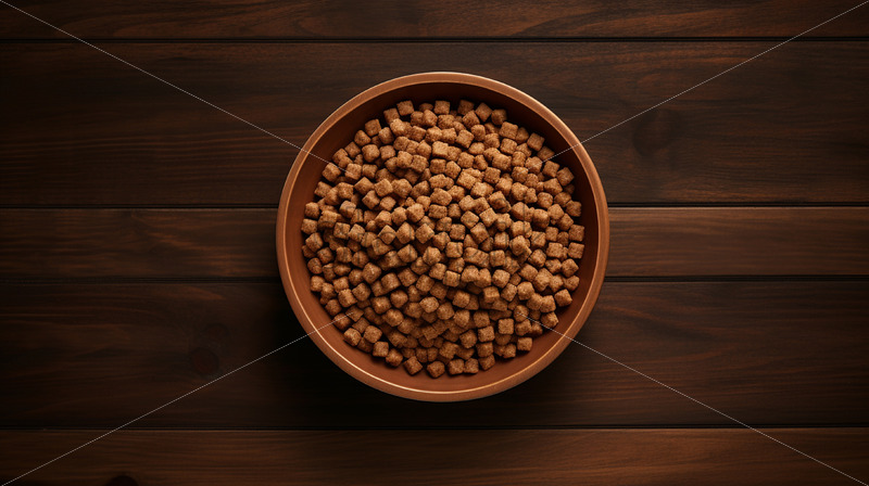 A plate of dog food on a wooden floor