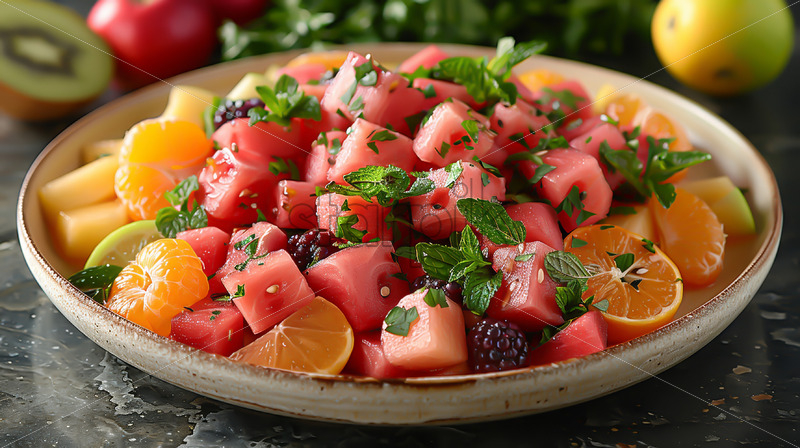 A fruit salad on a plate