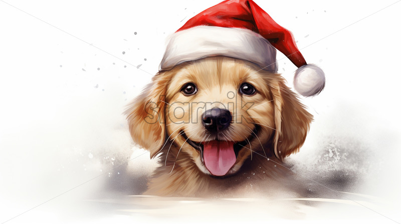 Home » Shop » Uncategorised » A portrait of a puppy with a Santa hat created in watercolor