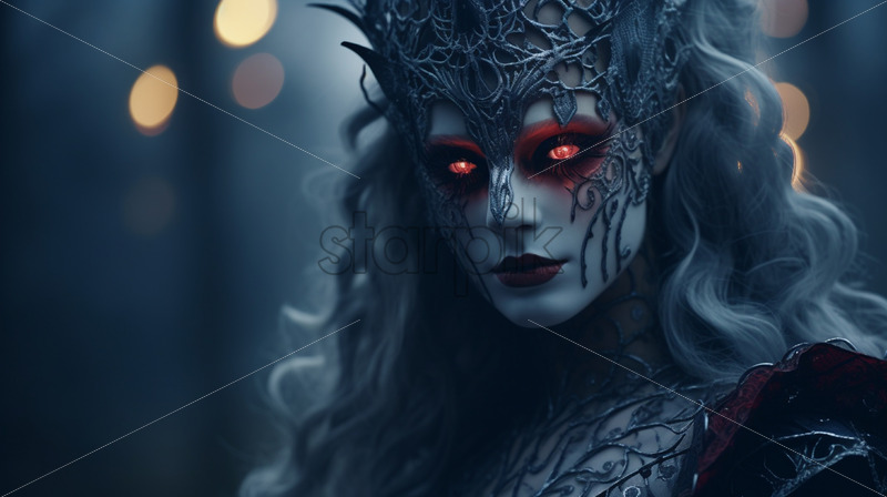 Caucasian woman in dress with view of Barcelona on the background, Spain