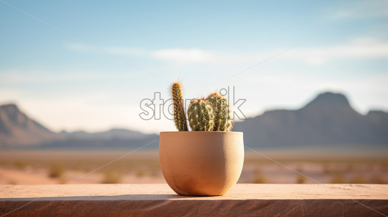 A solitary cactus standing resiliently against the harsh desert backdrop