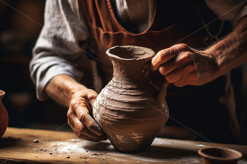 A pottery enthusiast, hands covered in clay, shapes and molds a piece of pottery on a spinning wheel in a sunlit studio. Their face radiates joy and creativity as they immerse themselves in the tactile art form.