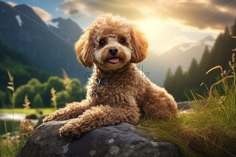 Close view of a woman petting her happy german spaniel with brown fur and opened mouth, nature