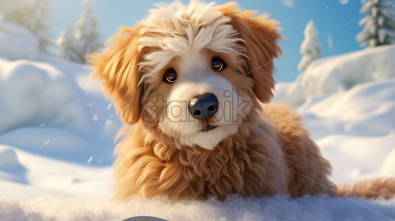 A puppy in the snow, cartoon style