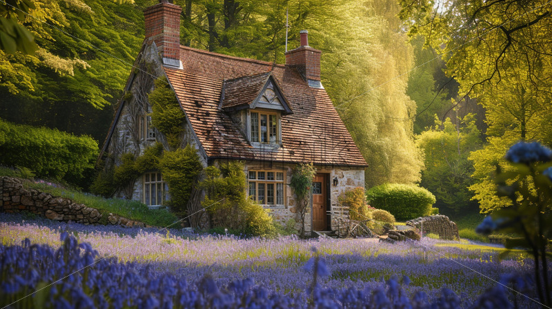 Traditional house with rustic thatched roof in a sunny day. Trees, flowers and bright blue sky with clouds on background. Giethoorn, Netherlands Royalty Free Stock photo