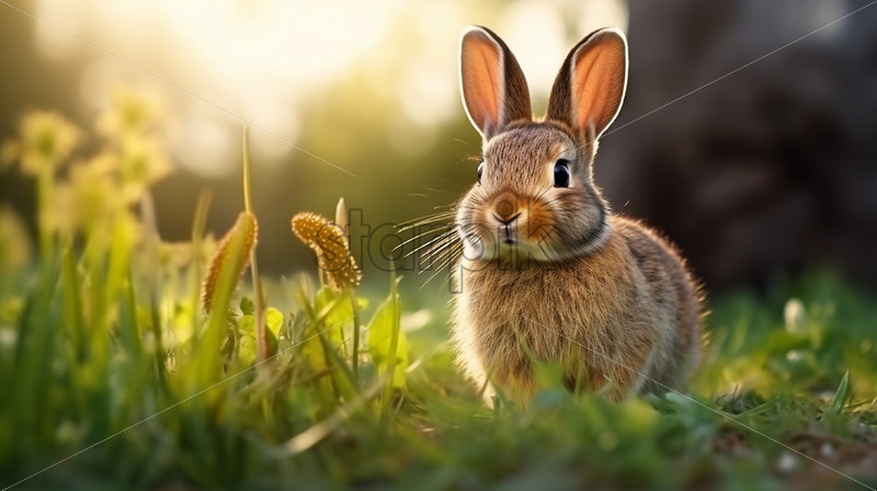 Close up of a striped tabby cat sitting calmly in tall green grass and staring directly at the lens Royalty Free Stock Video Footage
