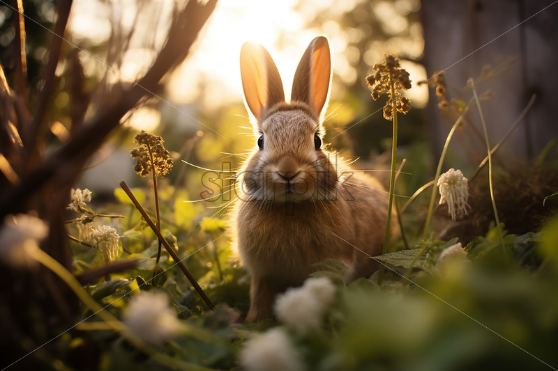 A rabbit on green meadow