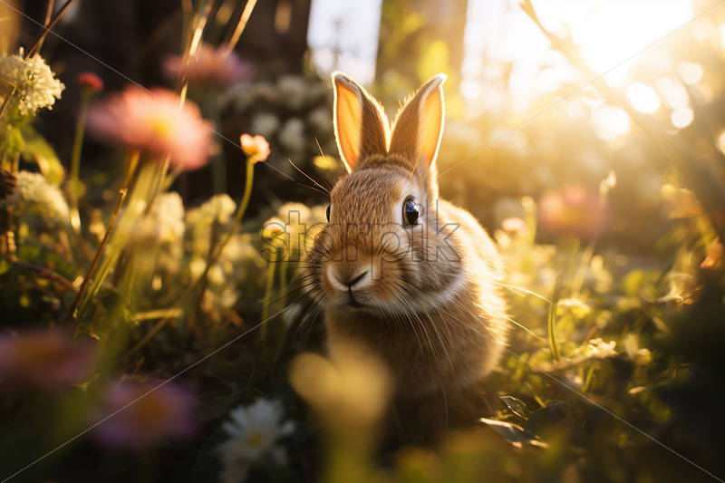 A rabbit with eggs painted on the grass in watercolor clipart style
