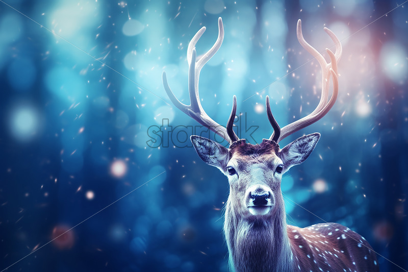 A reindeer on a Christmas background