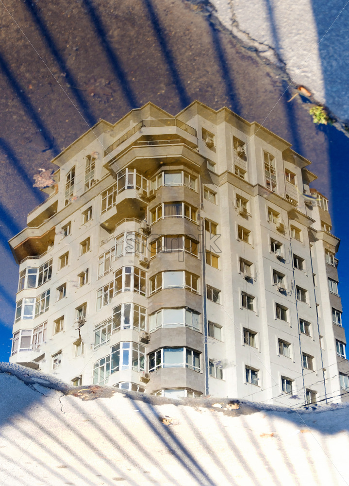 Aerial drone view of a residential distict in Chisinau, Moldova. Multiple buildings, road, walking man, Cloudy weather, bare trees, winter Royalty Free Stock Video Footage Royalty Free Stock Video Footage
