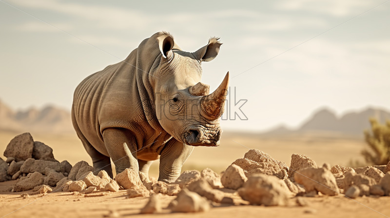 The silhouette of a fox on a plain at sunset, created in 2d software