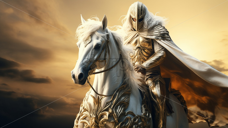 Home » Shop » Uncategorised » A rider on a white horse with golden armor