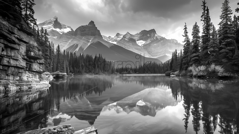 A river among the mountains, black and white image