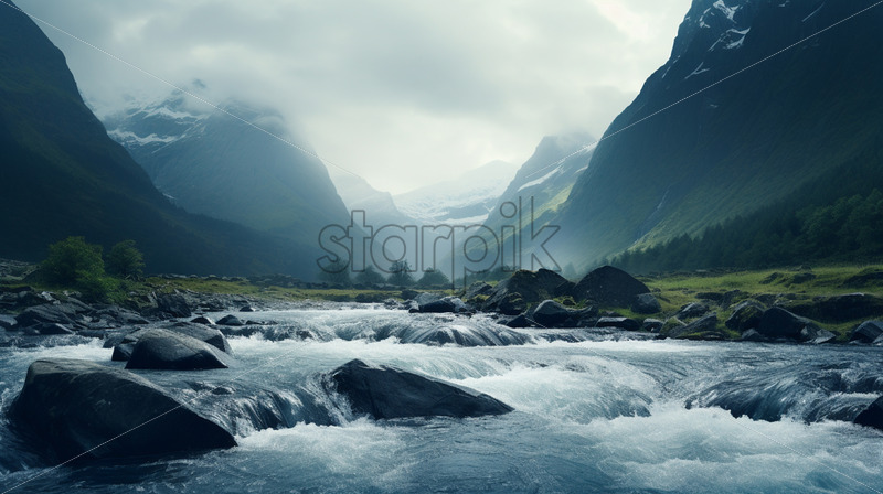 Wooden relaxing area on the sovata lake in romania, rest area surrounded by historic forested mountains, rainy day, fog and reflection, near salt mine