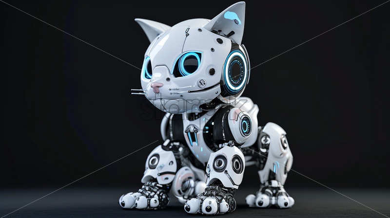 A robot cat on a black background
