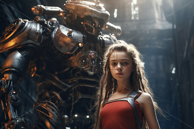 Young girl using virtual reality helmet while wearing a jacket. Neon red and blue lights on concrete background. Touching with fingers. Place for text Royalty Free Stock photo