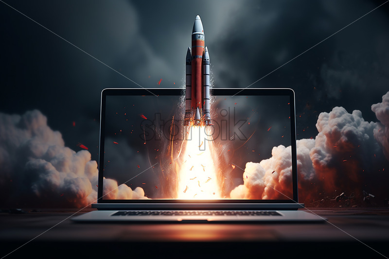 Close up of a miniature toy space shuttle placed on a blue cosmic galaxy backdrop Royalty Free Stock Video Footage