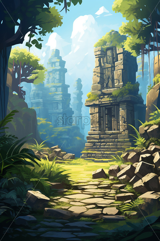 Home » Shop » Uncategorised » A ruined temple in the jungle created in 2d software