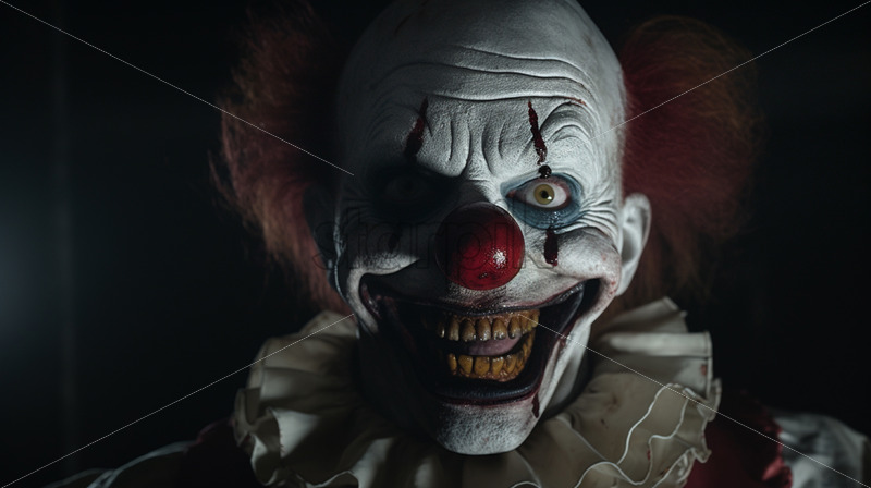 A scary clown with a devilish smile