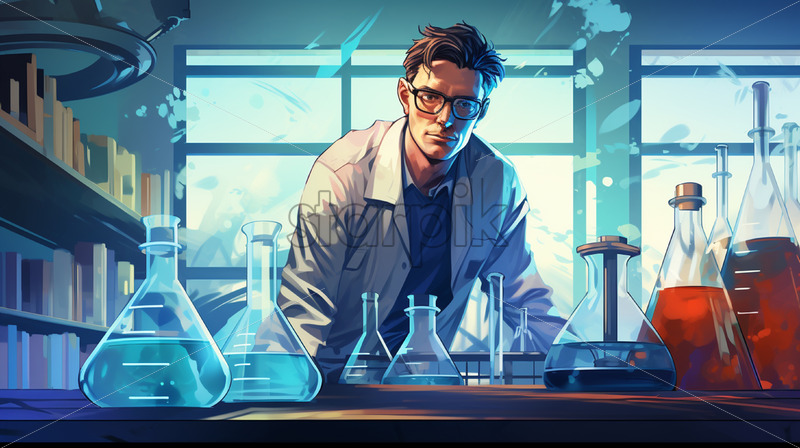 Home » Shop » Uncategorised » A scientistchemist in a laboratory with test tubes, vector art