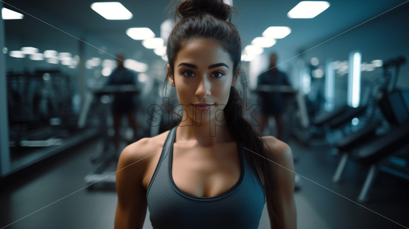 Portrait of a smiling woman with overweight in a tracksuit on a sports field in a park looking into the camera