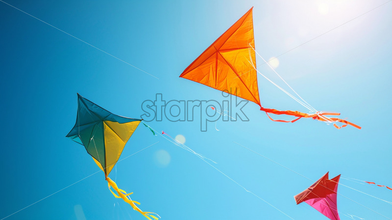 Home » Shop » Uncategorised » A series of colorful kites soaring high in the clear, blue sky