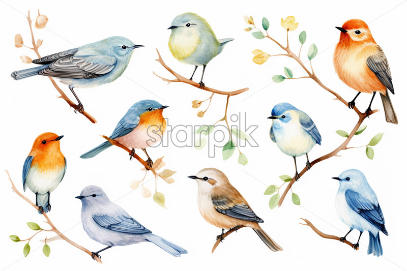Home » Shop » Uncategorised » A set of birds on a white background, created in watercolor