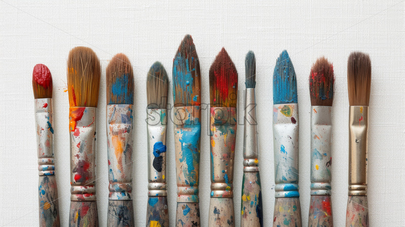 Caucasian woman painting a picture with a palette in her hands, indoors. Slow motion Royalty Free Stock Video Footage