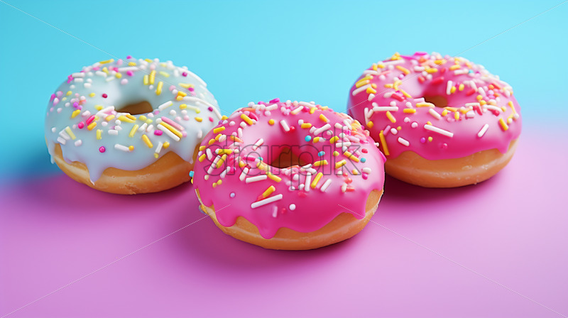 A set of donuts on a colorful background