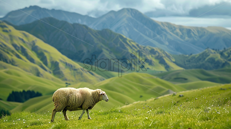 Home » Shop » Uncategorised » A sheep grazing on a plain in the mountains