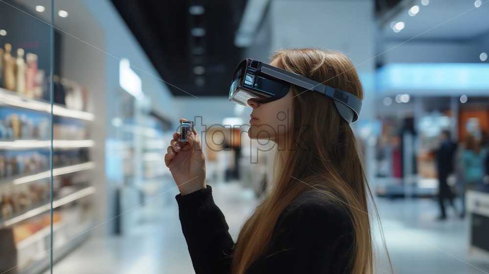 students wearing AR glasses in a science lab, visualizing quantum experiments