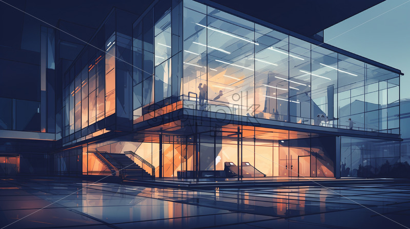 View of a sleek modern office building with large glass windows reflecting the city, surrounded by trees in London, England Royalty Free Stock Video Footage