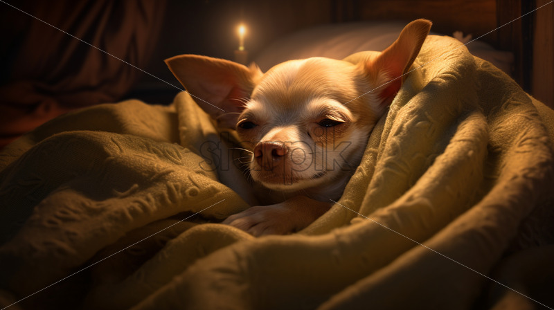 Portrait of Pomeranian with yellow fur, brown eyes, close view