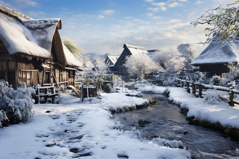 A watercolor illustration in Asian style, with mountains, pagodas, trees