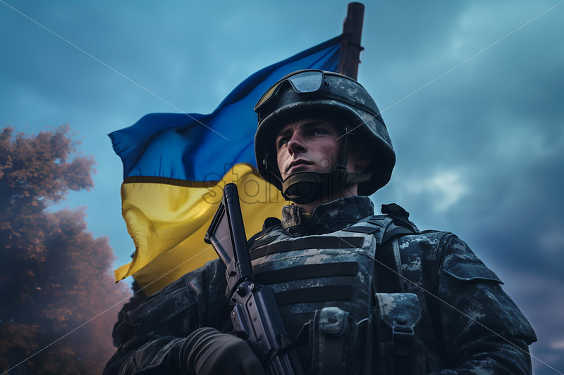 CHISINAU, MOLDOVA – FEBRUARY, 2022: Red-haired woman with glasses holding a phone with the icon of the blocked Facebook, national flags of Russia on her cheek and on the background
