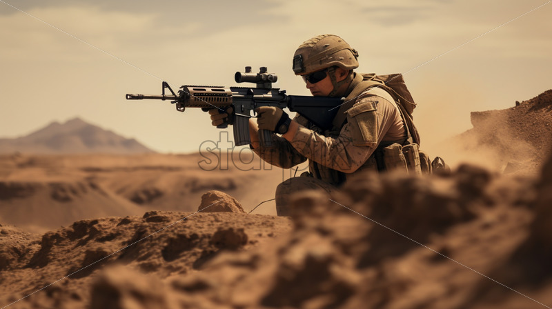 Home » Shop » Uncategorised » A soldier in the desert firing his gun