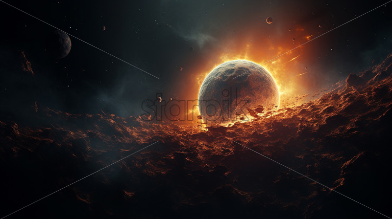 A space scene with a planet and a sun
