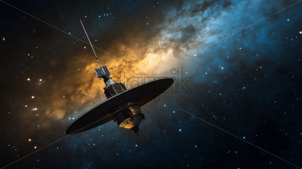 quantum spaceship surrounded by entangled particles in starry galaxy