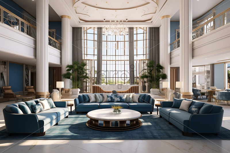 Modern house architecture in the city with clear glass wall in the lounge and second floor on a bright ambience cozy couch in front of the book shelves