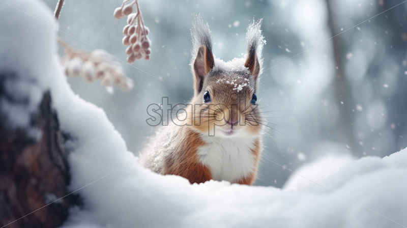 A squirrel in the forest in winter