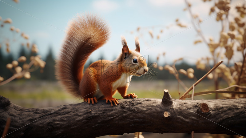 Close up of a squirrel sitting on a branch on a blurred background Royalty Free Stock Video Footage