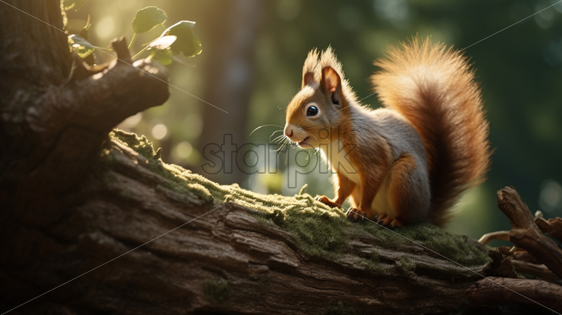 Close up of a squirrel sitting on a branch on a blurred background Royalty Free Stock Video Footage