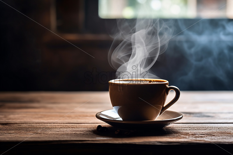 A steaming cup of coffee