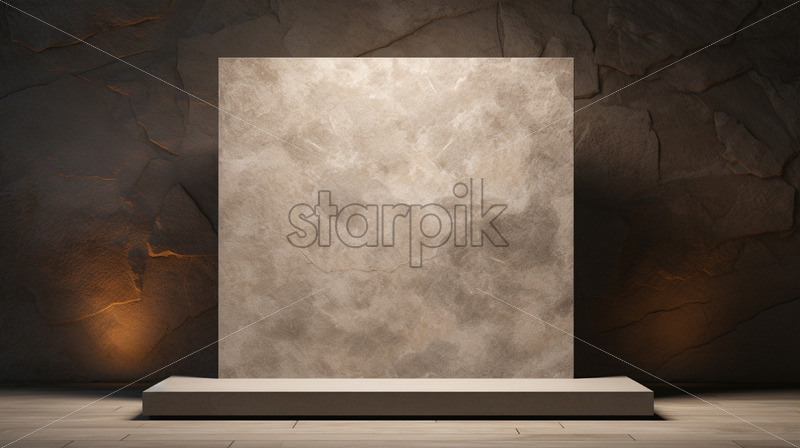 A piece of stone in the form of a podium in a studio, lots of greenery