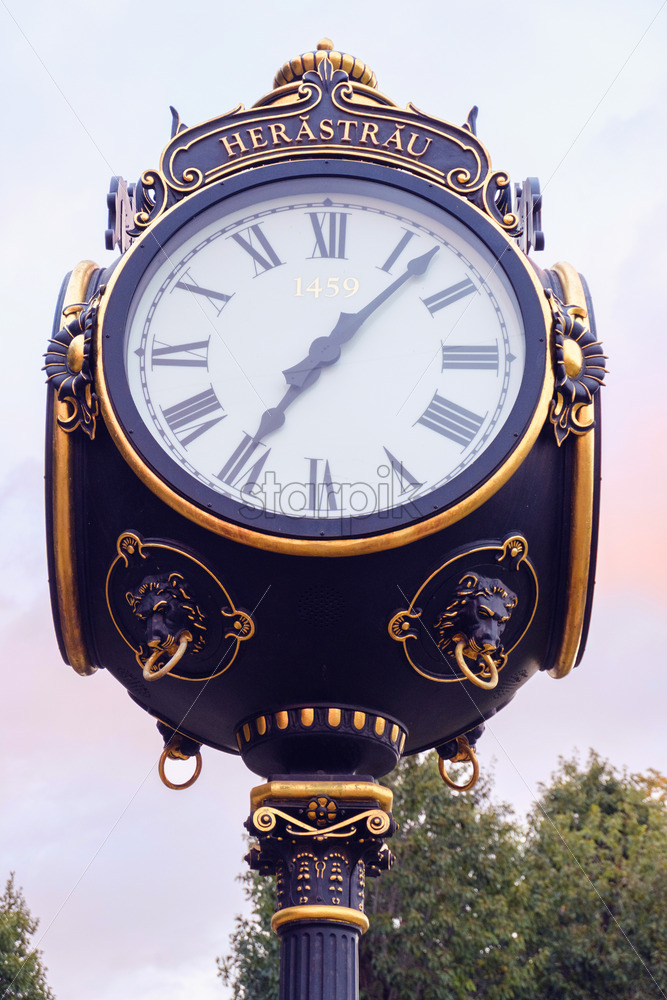 a street classic clock arranged in the herastrau park, Bucharest, Romania Royalty Free Stock photo